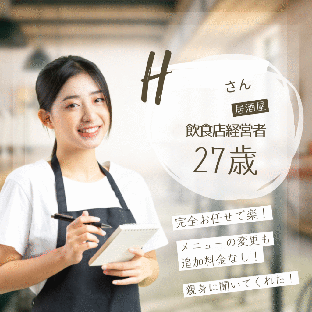 「食べログに頼ってましたが写真表示の自由度やたくさんのメニューを表示できてお客様ににお店の良さを事前に知ってもらえたことが売上増加の理由だと思います!」(28歳 飲食店経営)